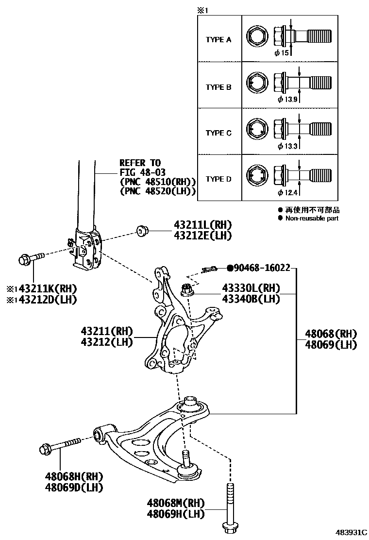 48068HBOLT(FOR FRONT SUSPENSION LOWER ARM NO.1 RH)
