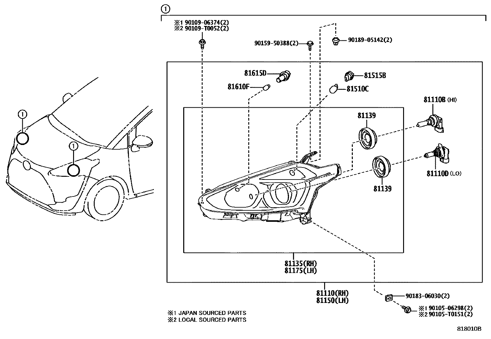 HEADLAMP — Toyota Parts Diagram with OEM Numbers & Prices | EPC Data