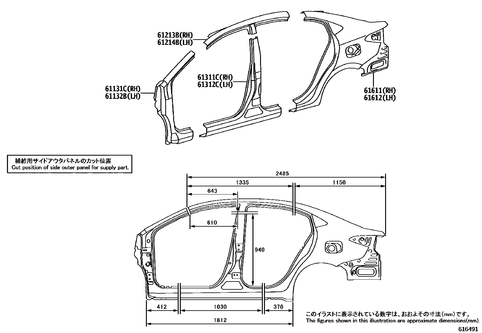 61311CPANEL, REAR BODY FRONT OUTSIDE, RH