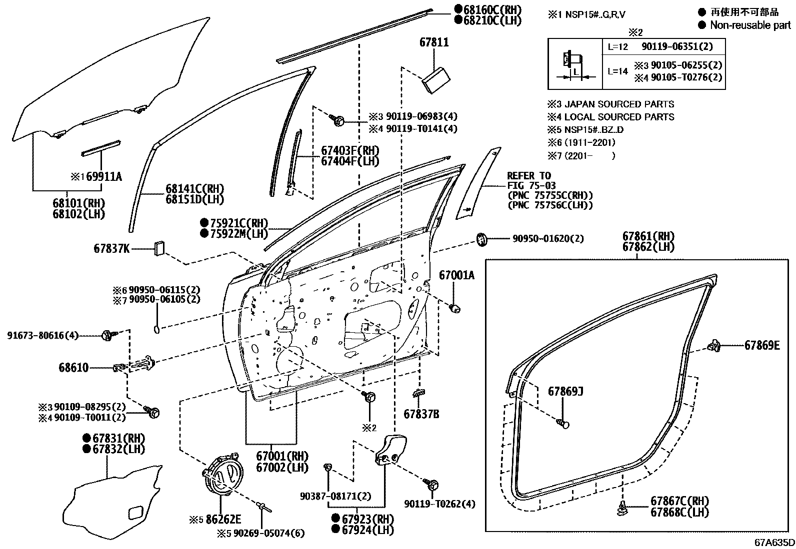 FRONT DOOR PANEL & GLASS — Toyota Parts Diagram with OEM Numbers & Prices | EPC Data