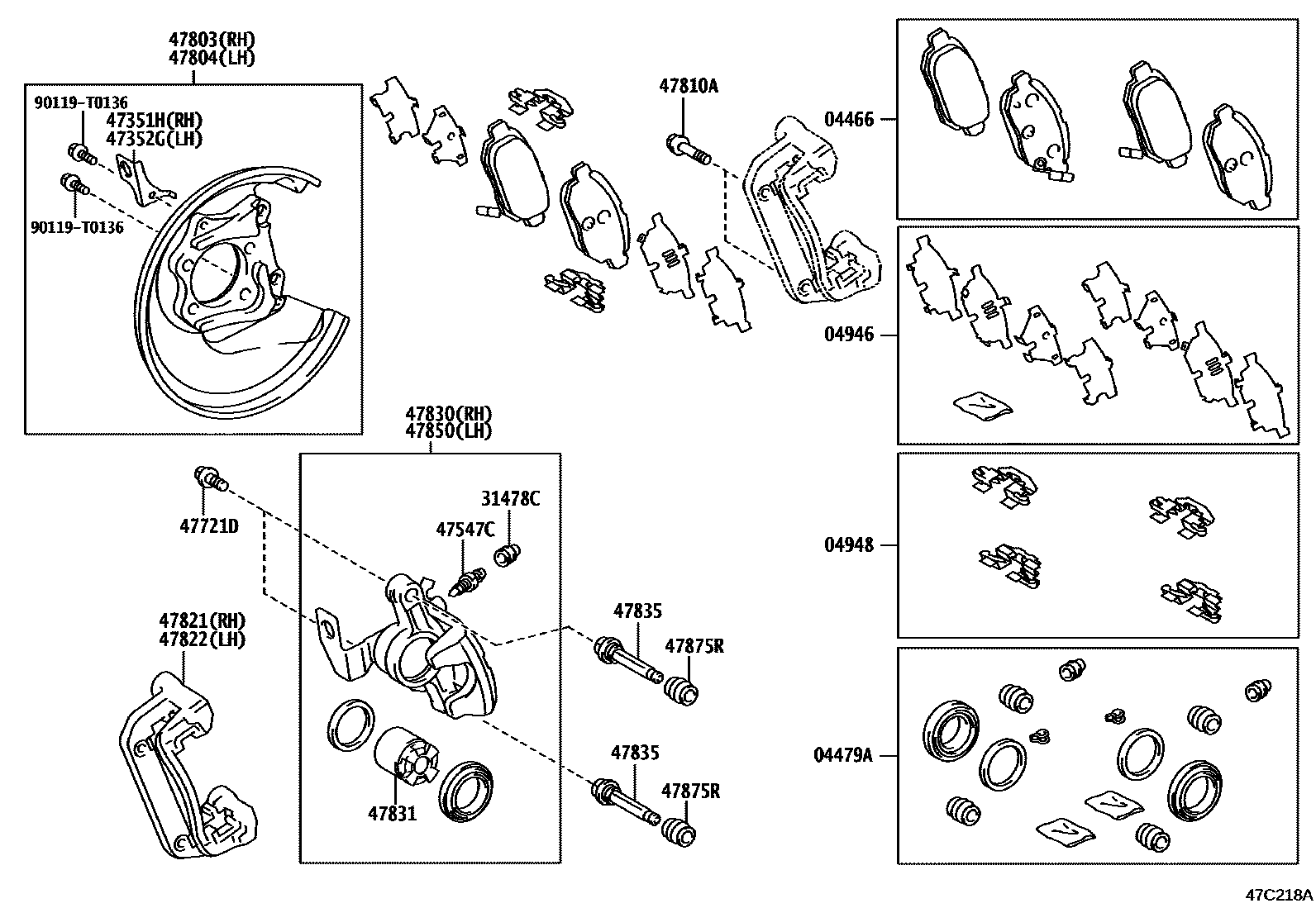 REAR DISC BRAKE CALIPER & DUST COVER — Toyota Parts Diagram with OEM Numbers & Prices | EPC Data