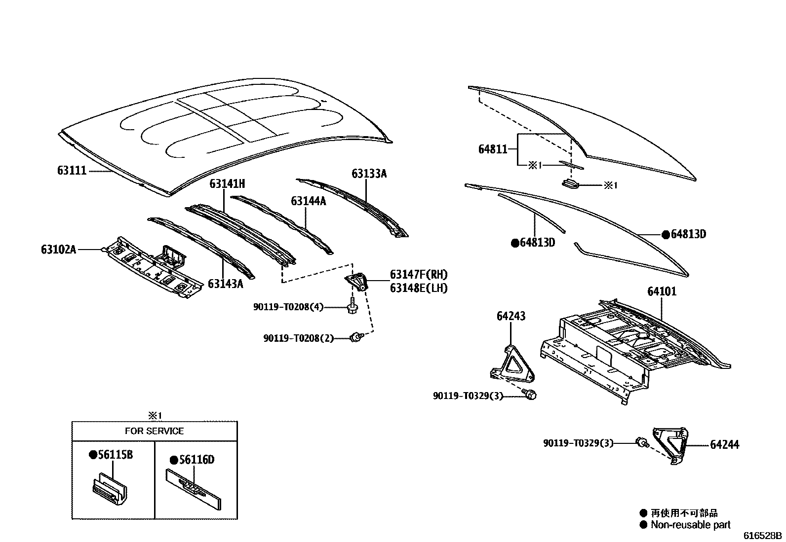 ROOF PANEL & BACK WINDOW GLASS — Toyota Parts Diagram with OEM Numbers & Prices | EPC Data