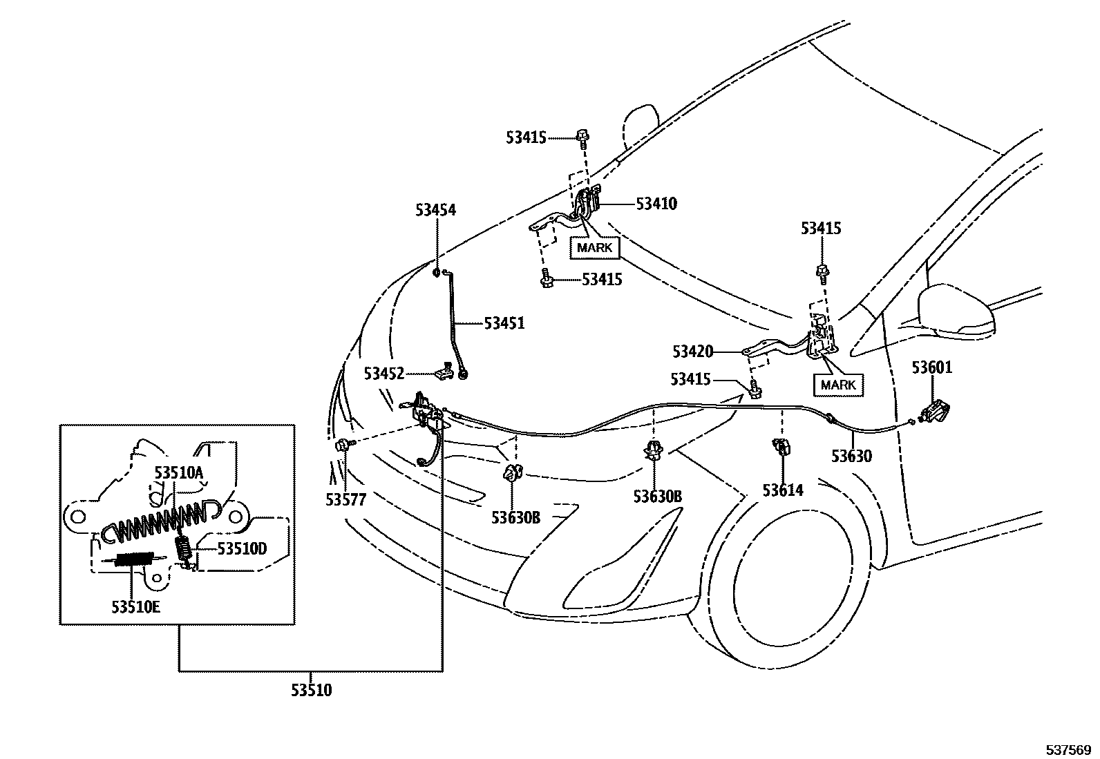 HOOD LOCK & HINGE — Toyota Parts Diagram with OEM Numbers & Prices | EPC Data