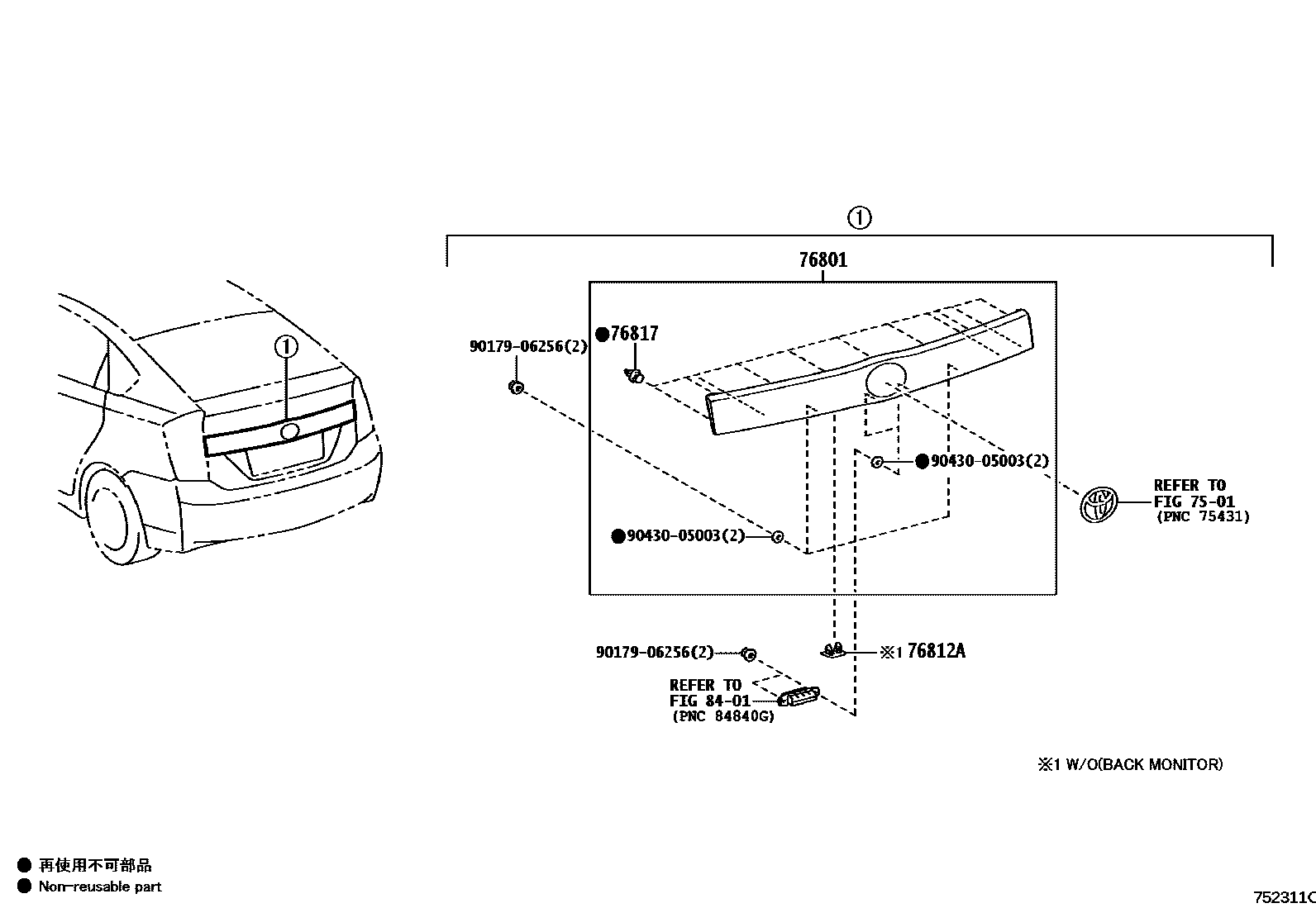 76801GARNISH SUB-ASSY, BACK DOOR, OUTSIDE