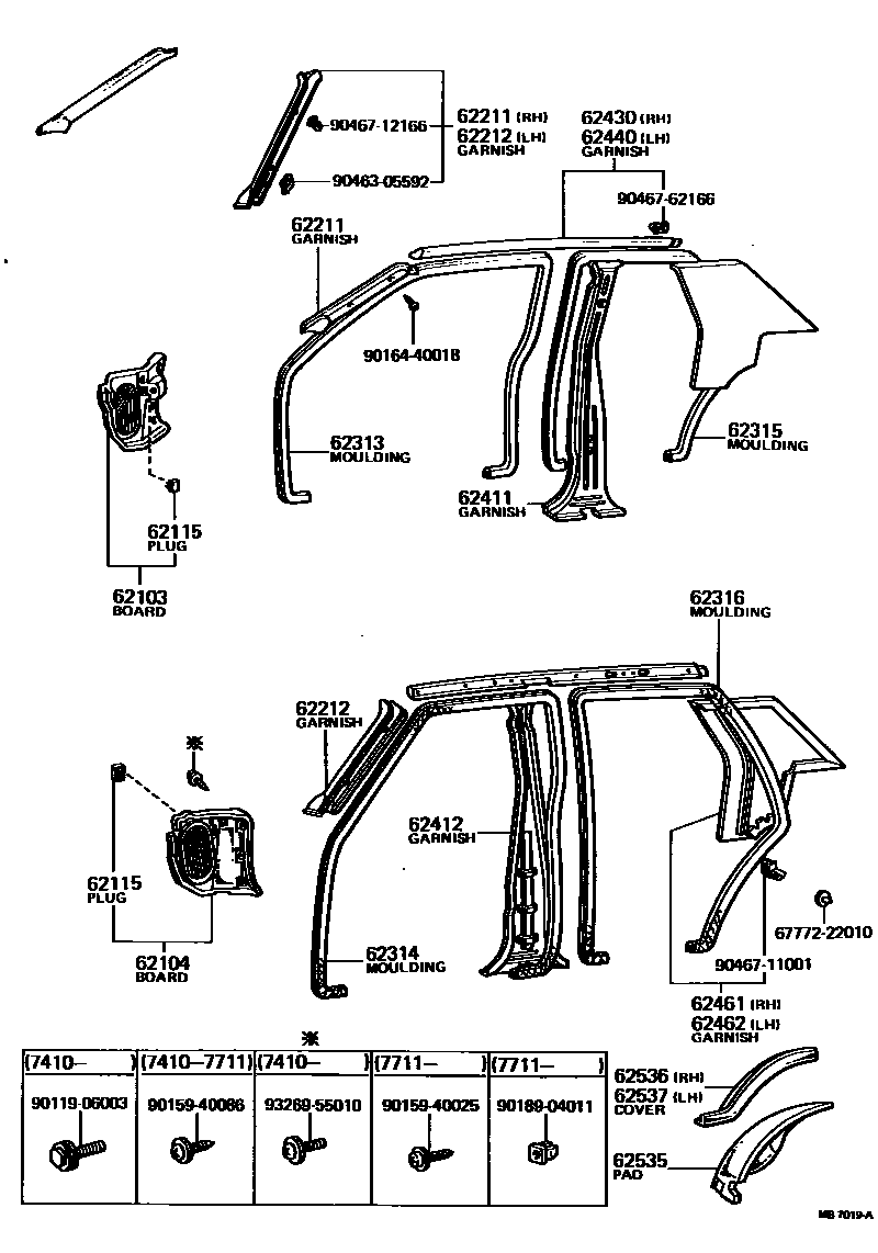 INSIDE TRIM BOARD & DOOR OPENING TRIM MOULDING — Toyota Parts Diagram with OEM Numbers & Prices | EPC Data