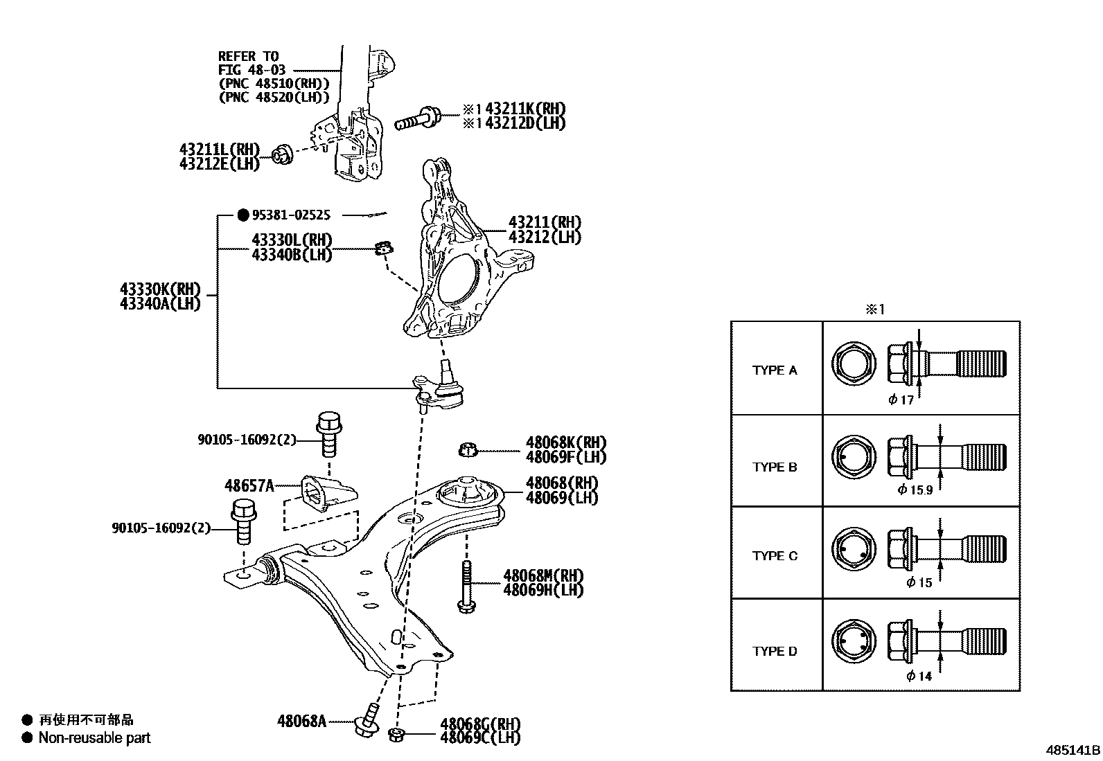 48069CNUT(FOR FRONT SUSPENSION LOWER ARM NO.1 LH)