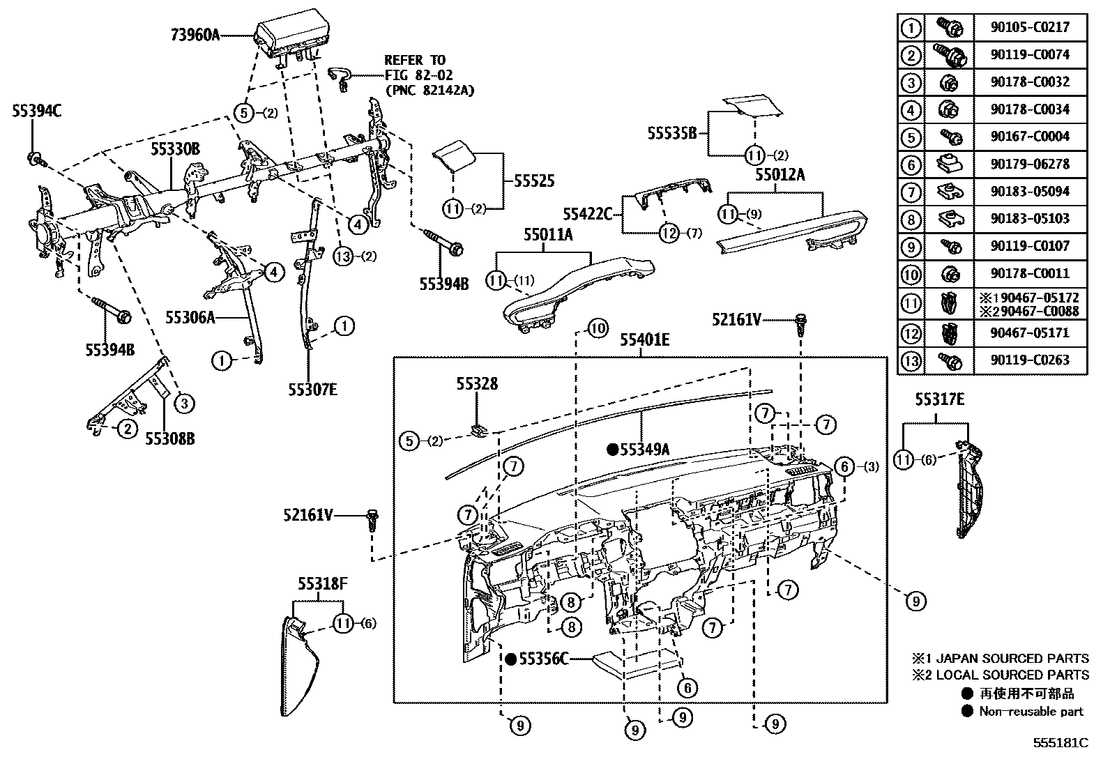 INSTRUMENT PANEL & GLOVE COMPARTMENT — Toyota Parts Diagram with OEM Numbers & Prices | EPC Data