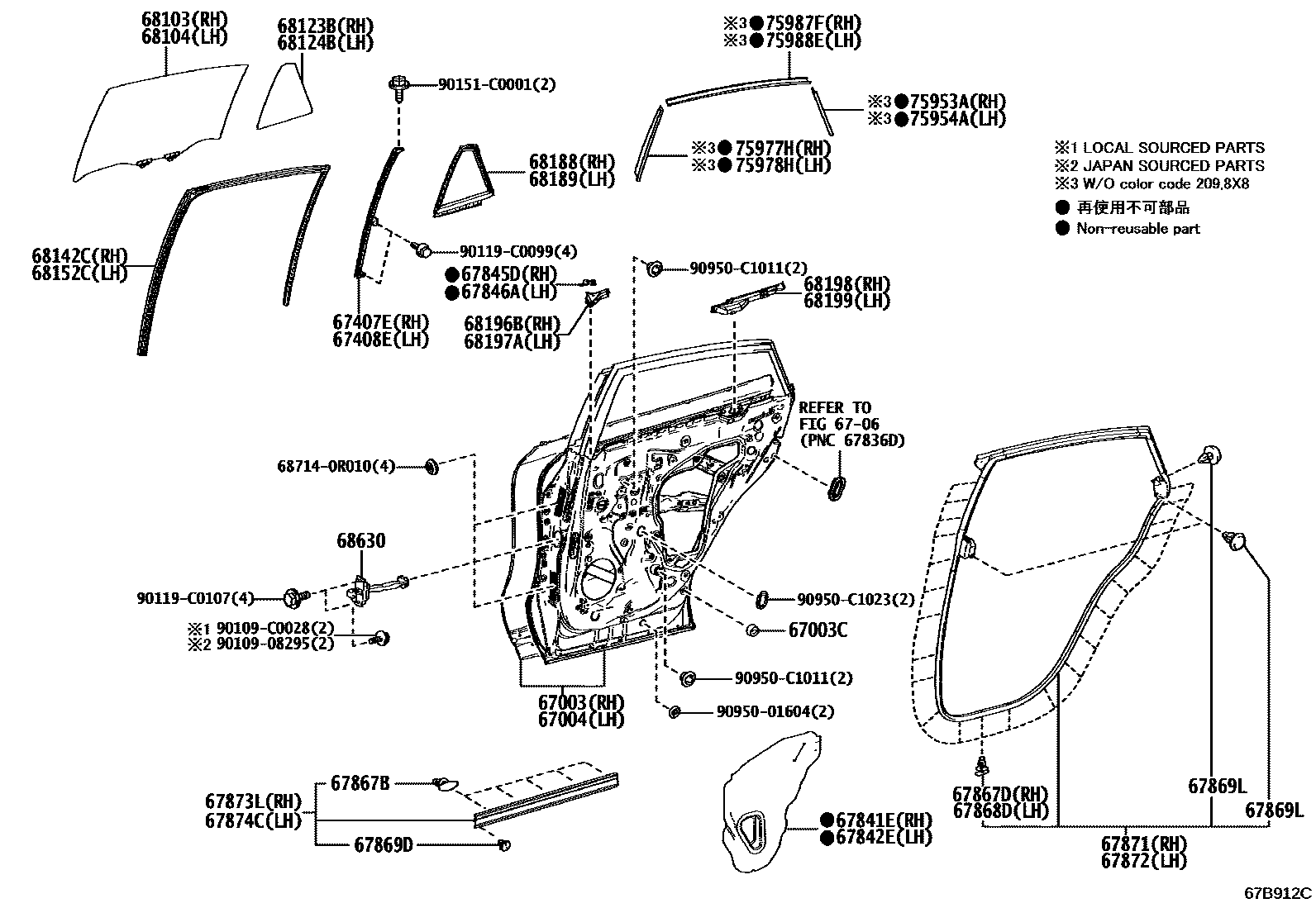 REAR DOOR PANEL & GLASS — Toyota Parts Diagram with OEM Numbers & Prices | EPC Data