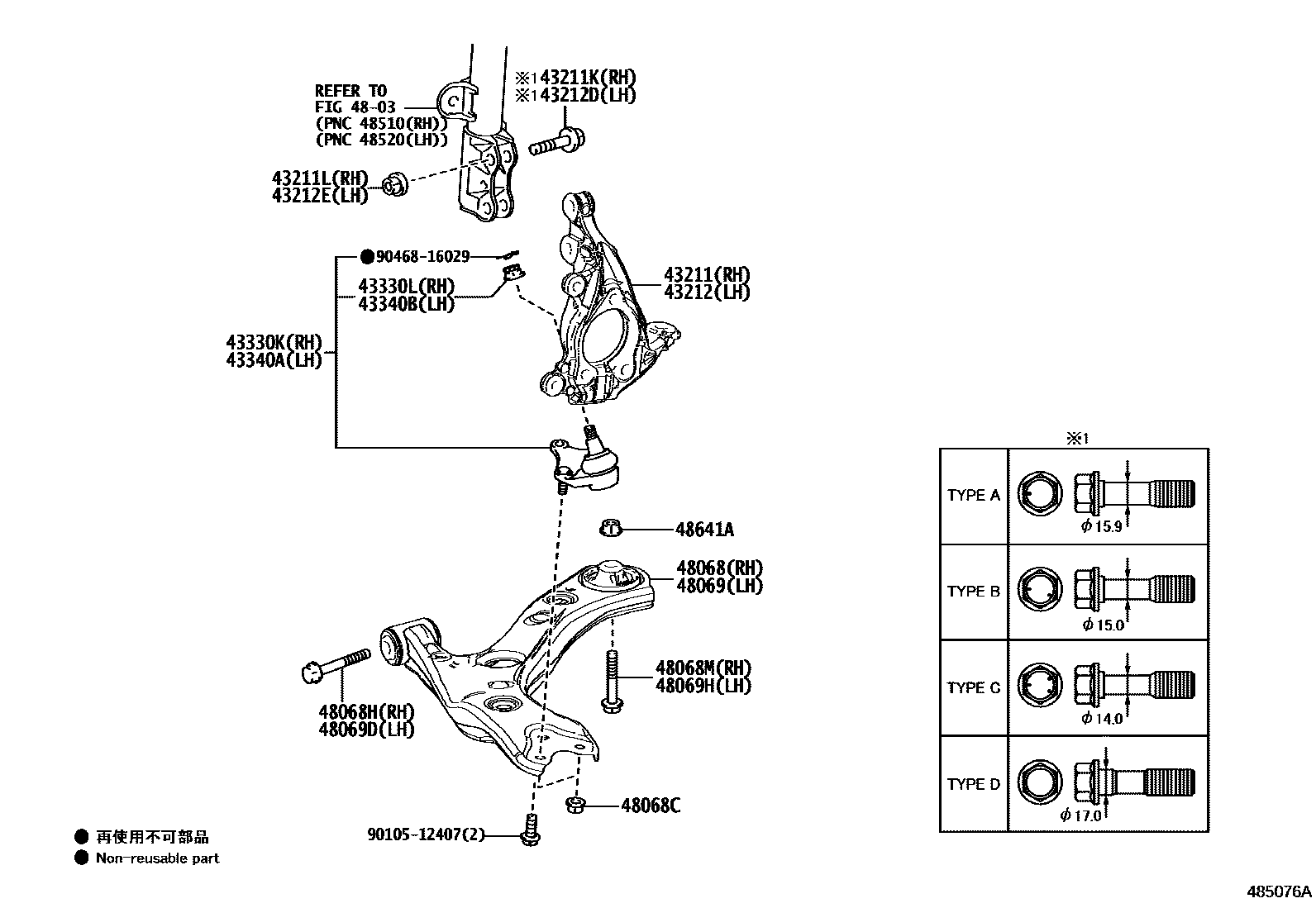48068HBOLT(FOR FRONT SUSPENSION LOWER ARM NO.1 RH)