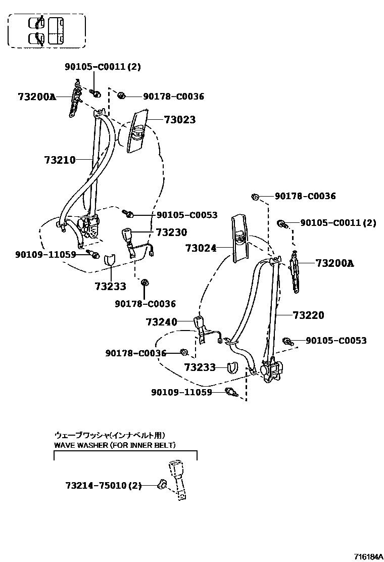 73240BELT ASSY, FRONT SEAT INNER, LH