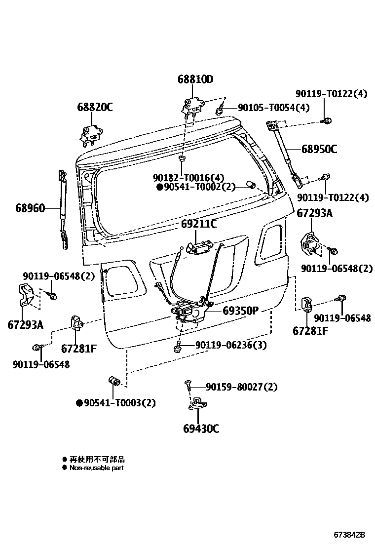 BACK DOOR LOCK & HINGE — Toyota Parts Diagram with OEM Numbers & Prices | EPC Data