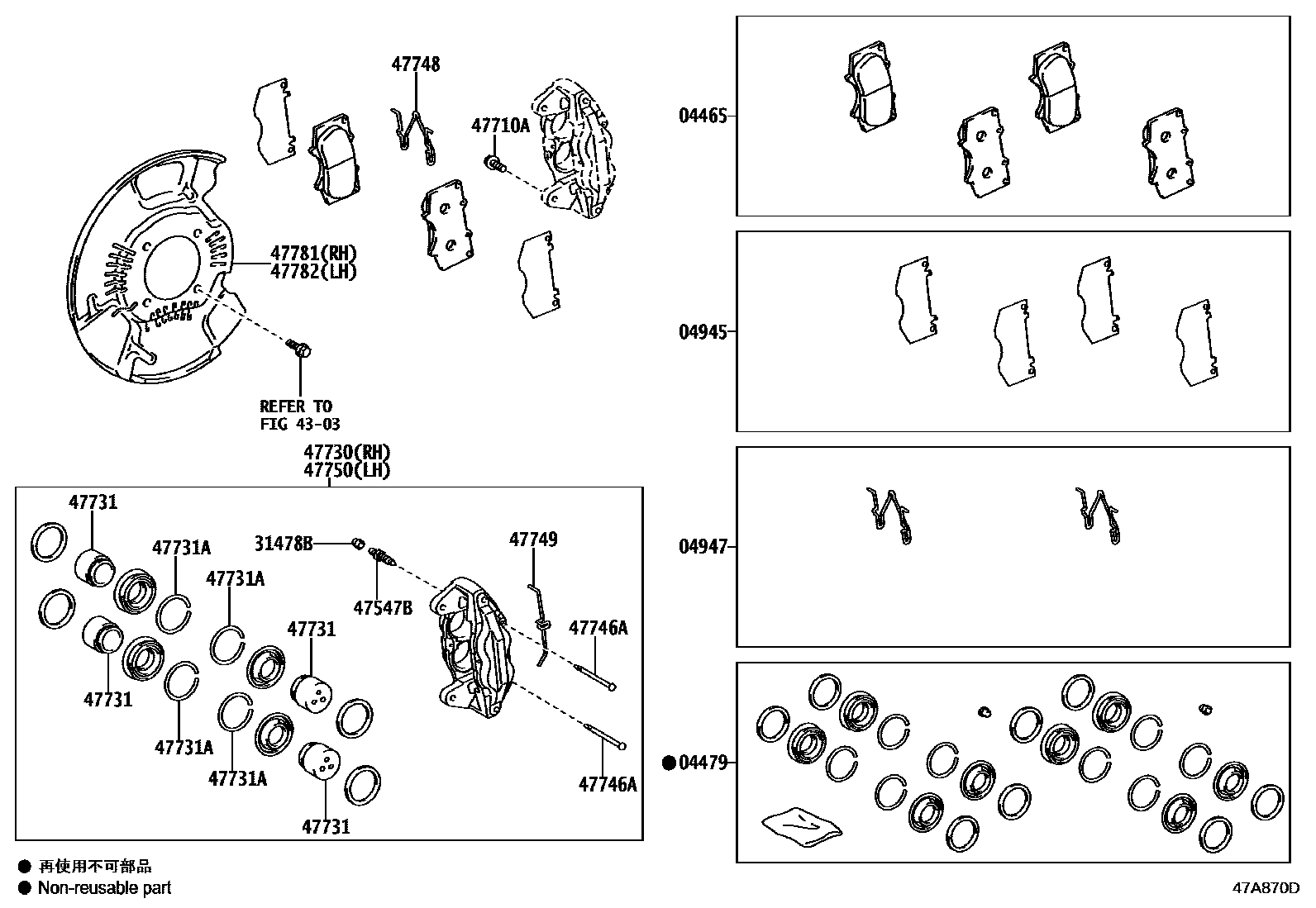 main04945-60090iGDJ150,GRJ150,KDJ150,LJ150,TRJ15#201708-202312 04947FITTING KIT, DISC BRAKE, FRONT