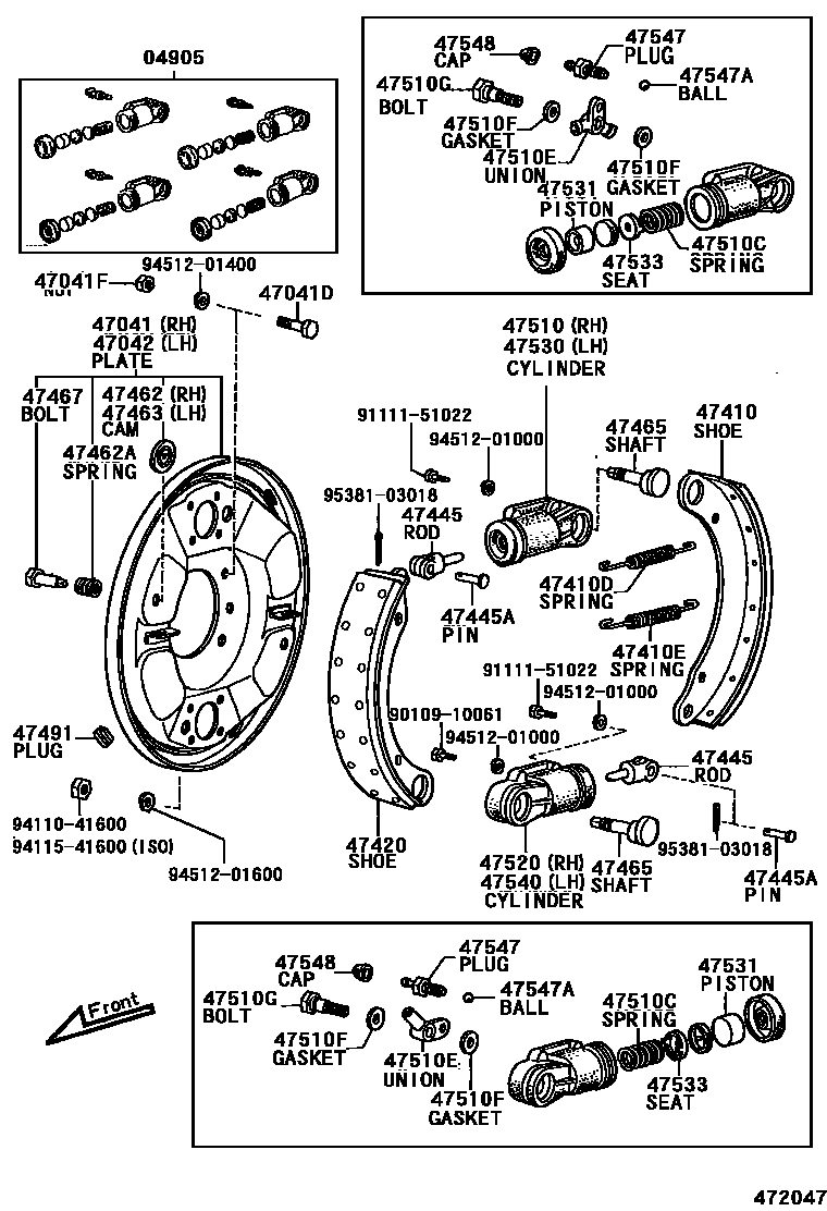 main47533-55020×4iDA11#,DB10#,FA100,11#,FB100,FC100196903-197003 main47537-37010×4iDA11#,DB10#,FA100,11#,FB100197003-197302 47540CYLINDER ASSY, FRONT WHEEL BRAKE, LH(FOR REAR OR LOWER)