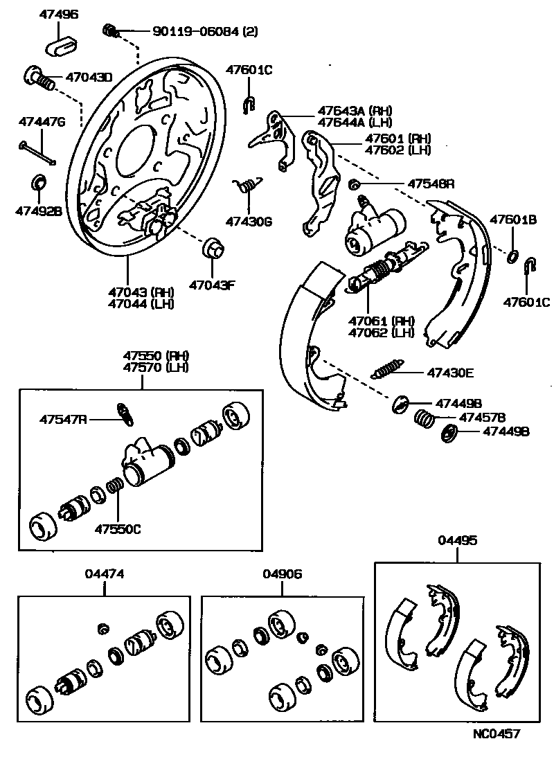 main04474-10032×2iAT171,CT176,ET176..CBR,DSL,EFIS198805-199211 main04474-16020×2iAT170,171,CT170,ST170..(DX,S,SE,SG,SGEXT,SV,SX)..(CBR,CI,DSL,EFI)198805-199211 04495SHOE KIT, REAR BRAKE