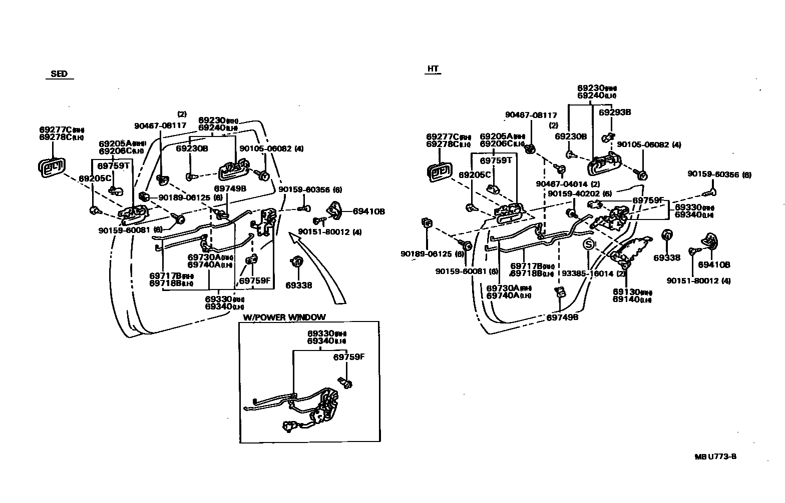 REAR DOOR LOCK & HANDLE — Toyota Parts Diagram with OEM Numbers & Prices | EPC Data