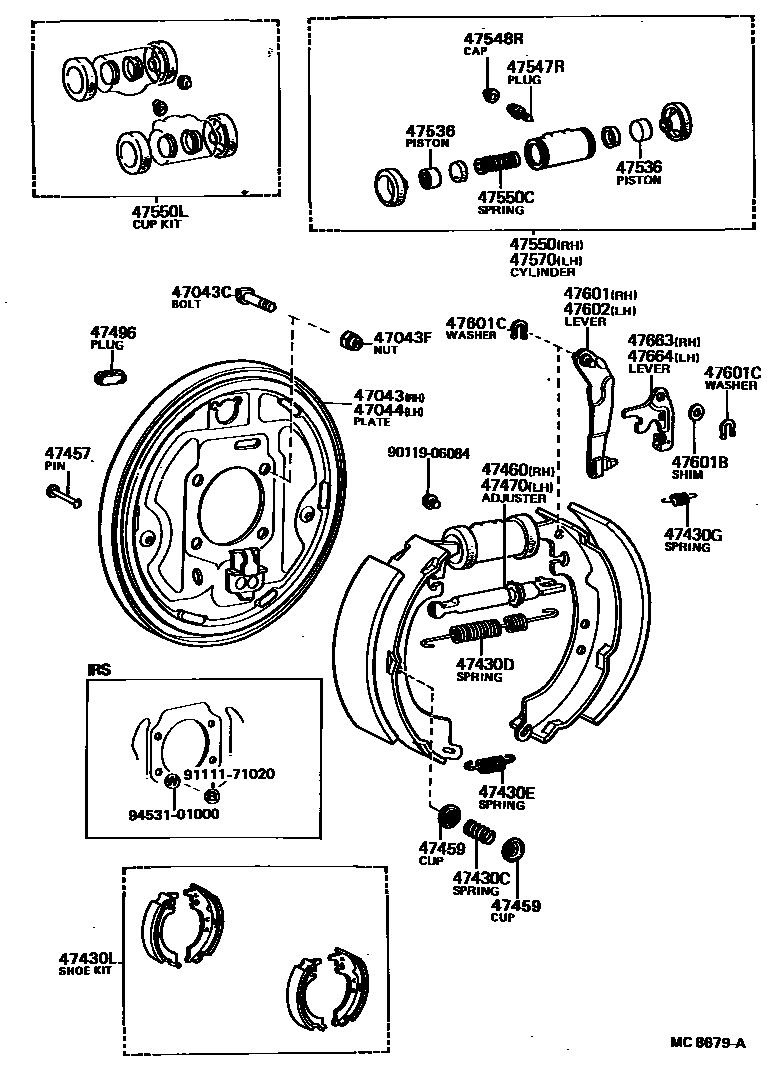 REAR DRUM BRAKE WHEEL CYLINDER & BACKING PLATE — Toyota Parts Diagram with OEM Numbers & Prices | EPC Data