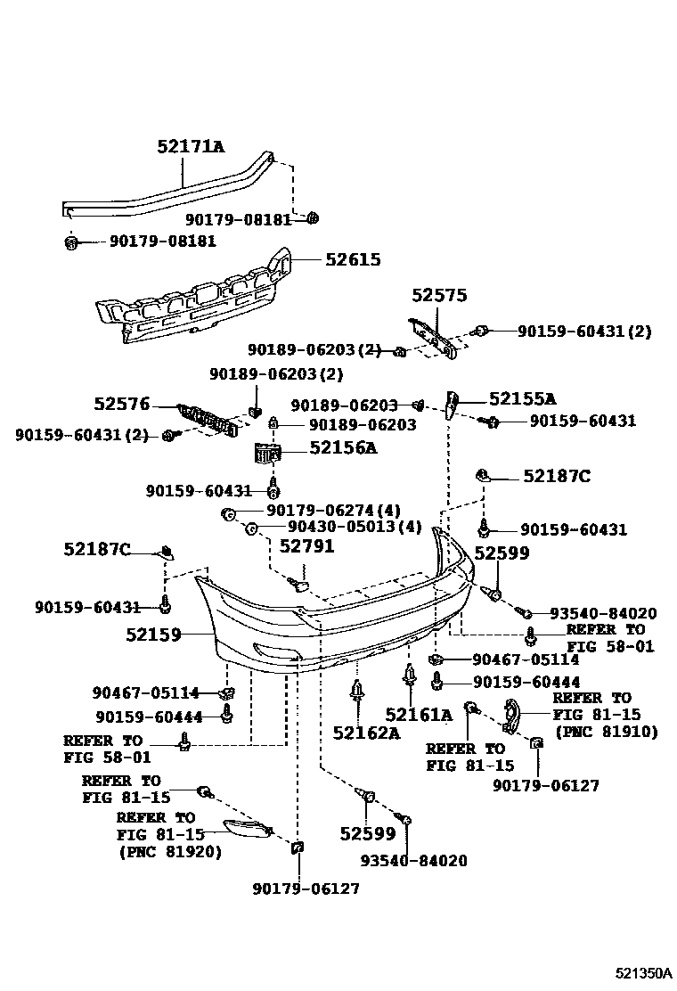 REAR BUMPER & BUMPER STAY — Toyota Parts Diagram with OEM Numbers & Prices | EPC Data