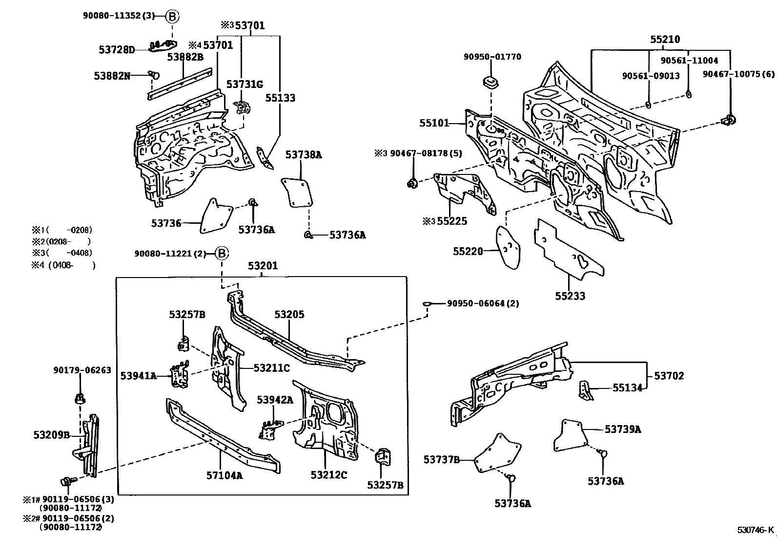 FRONT FENDER APRON & DASH PANEL — Toyota Parts Diagram with OEM Numbers & Prices | EPC Data
