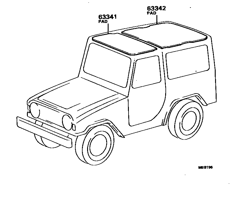 This section contains 2 genuine Toyota parts for the ROOF HEADLINING & SILENCER PAD system of the Toyota BLIZZARD. Key components include: PAD, ROOF SILENCER, NO.1, PAD, ROOF SILENCER, NO.2.