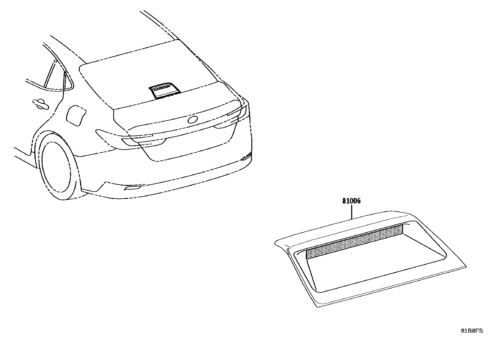 This section contains 1 genuine Toyota parts for the CENTER STOP LAMP system of the Toyota CAMRY. Key components include: LAMP SET, STOP CENTER.