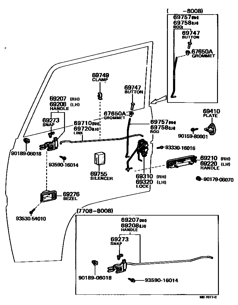 main69410-22020×2iBU2#,3#,40,HU30,40,50,JU20,RU2#,30,WU40,50197708-198411 69710LINK ASSY, FRONT DOOR OPEN CONTROL, RH
