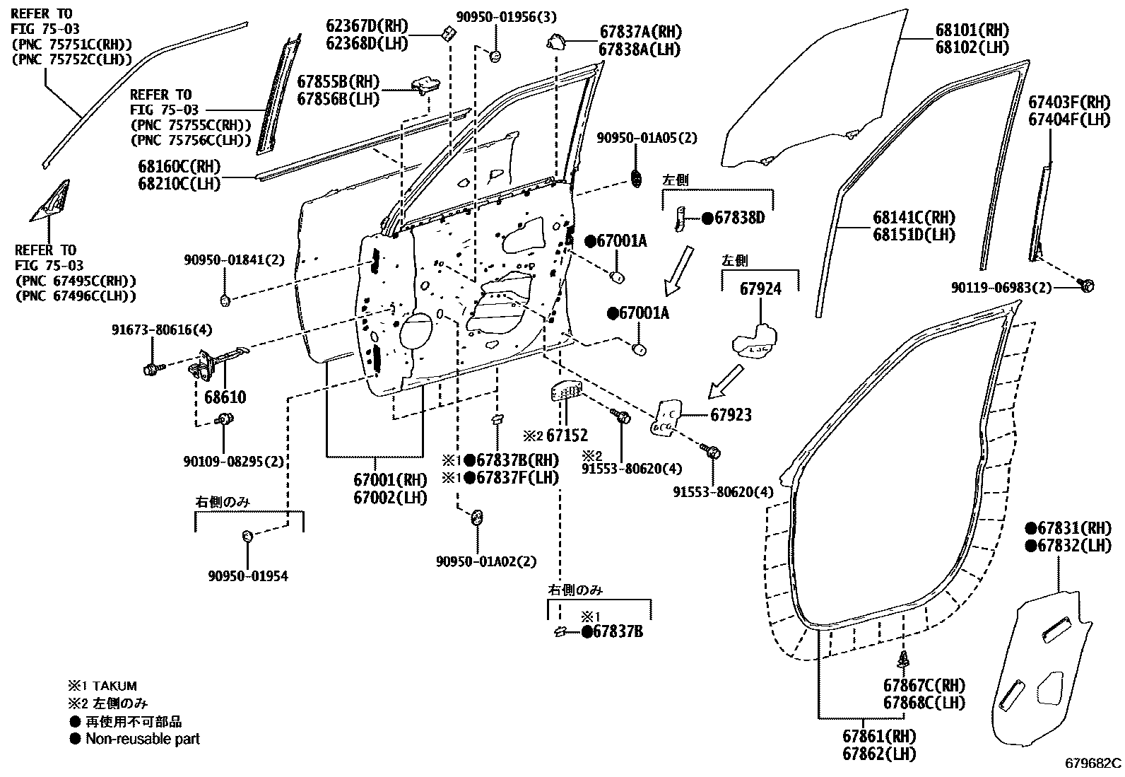 Toyota JPNTAXI — FRONT DOOR PANEL & GLASS