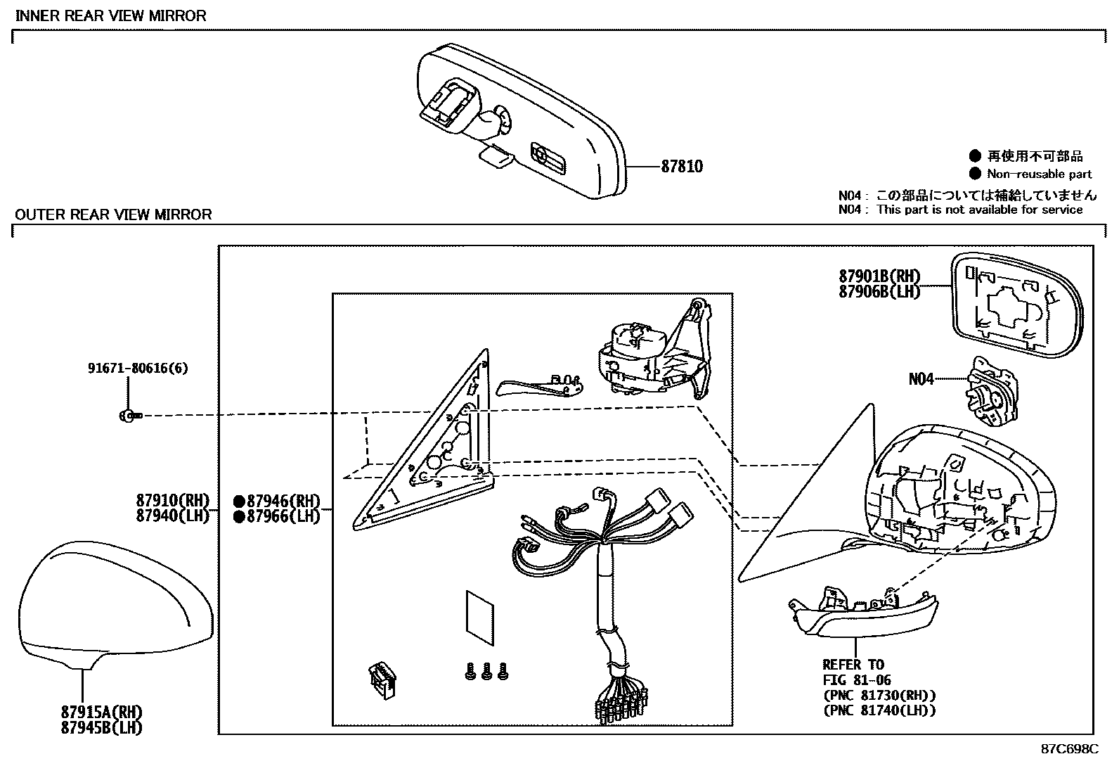 87910MIRROR ASSY, OUTER REAR VIEW, RH