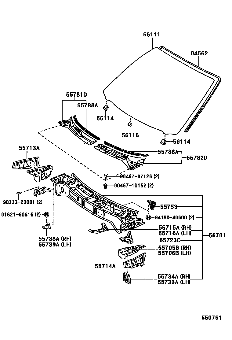 Toyota WINDOM — COWL PANEL & WINDSHIELD GLASS